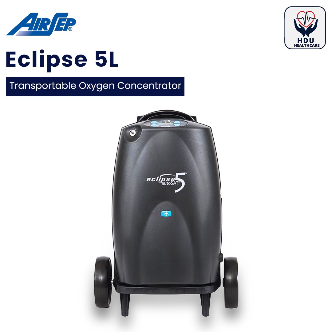 The Eclipse 5 from AirSep (sold as SeQual Eclipse 5) combines full 24/7 oxygen therapy capability with portability. It delivers adjustable oxygen therapy in both continuous and pulse modes, supporting a broad range of oxygen prescriptions. Its durable design, advanced autoSAT technology, and wheeled travel cart make it suitable for everywhere from home environments to road trips and airline travel.